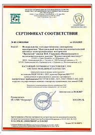 - № RU.130010.0069 от 15.10.2025 соответствия СМК требованиям ГОСТ Р ИСО 9001-2015;
