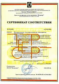 - № СК.0405 от 29.10.2024 г. соответствия СМК требованиям ГОСТ Р ИСО 9001-2015;