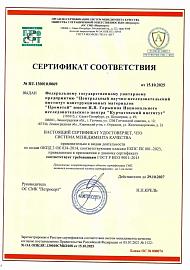 - № RU.130010.0069 от 15.10.2025 соответствия СМК требованиям ГОСТ Р ИСО 9001-2015;