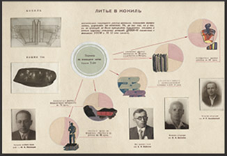 Тематическая часть экспозиции открывается портретами выдающихся учёных в области металлургии и металловедения. Аносов Павел Петрович (1799–1851 гг.) Русский металлург. Построил технологический процесс выплавки стали, который и сейчас является основой современного способа её производства; разгадал загадку знаменитой булатной стали. Впервые (1831 г.) применил микроскоп. Много сделал для превращения металлургии из ремесла в науку. Чернов Дмитрий Константинович (1839–1921 гг.)