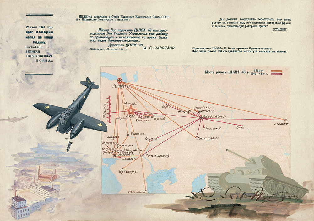 Аудиокомментарий к разделу У вас установлена старая версия флеш-плеера, обновите его. Предвоенный и военный периоды Работа института перед Великой Отечественной войной Перед войной в институте работало 399 человек. Были в работе 43 научно-технические темы: