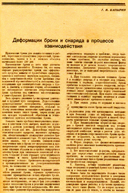 Георгий Ильич Капырин — второй директор института, крупный специалист в области металлургии, металловедения, сварки. Г.И. Капырин один из главных разработчиков брони нового типа для танка Т-34. В июне 1941 г. бригада ,